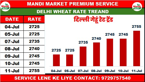 एमपी लाइन गेहूं भाव ₹ 2755 तेजी ₹ 10
