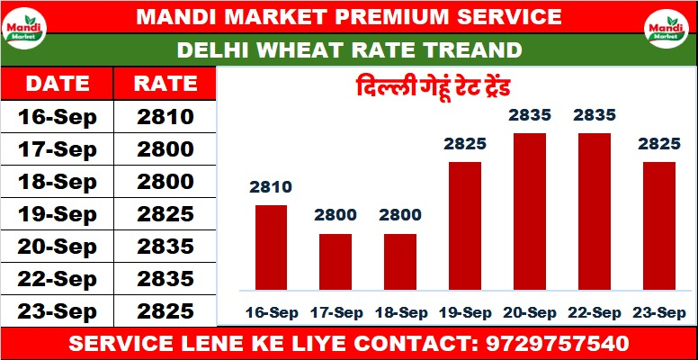 एमपी लाइन गेहूं का भाव ₹ 2820 से ₹ 2825 मंदी 10