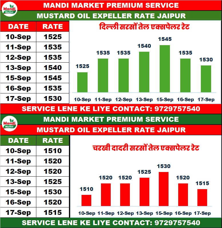 सरसों तेल एक्सपेलर भाव ₹ 1547 मंदी ₹ 3