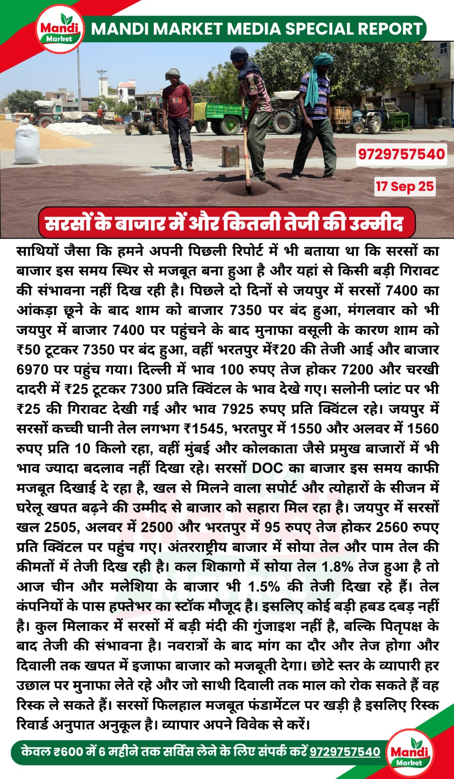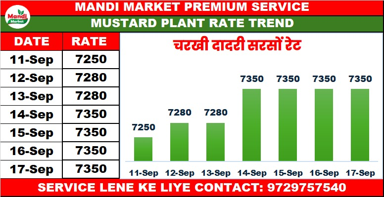 सरसों भाव ₹ 7300/7325 तेजी ₹ 25