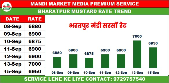 भरतपुर लोकल भाव ₹ 6950 मंदी ₹ 25
