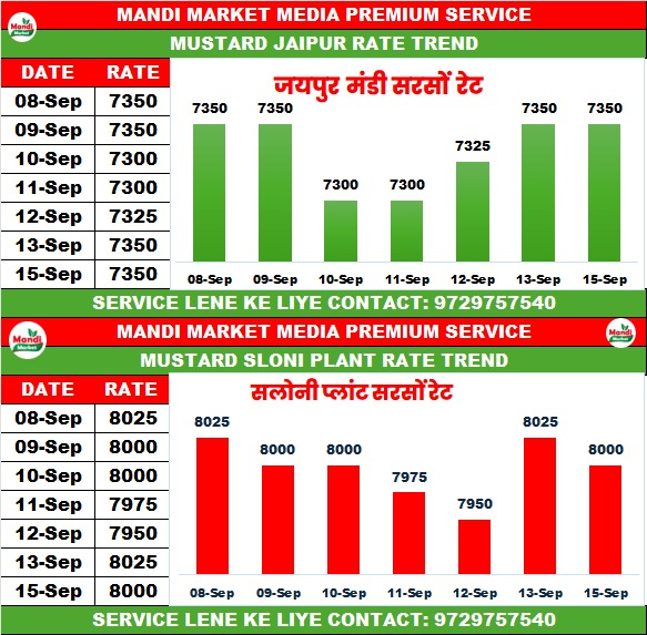 सरसों भाव ₹ 7300/7325