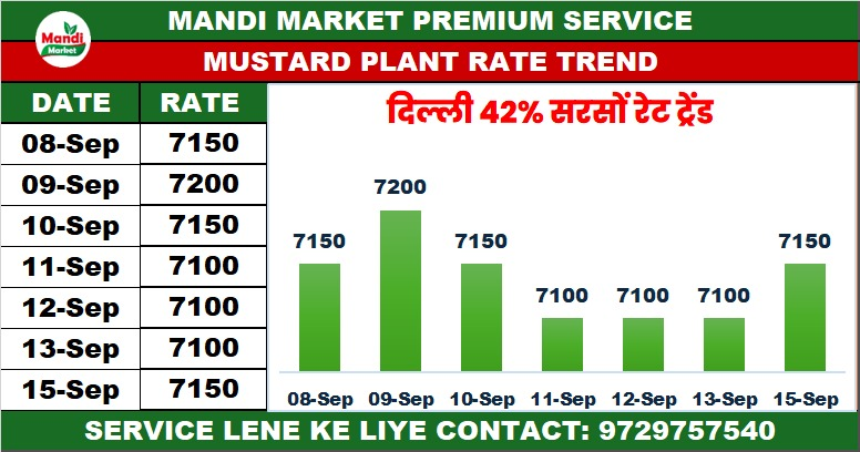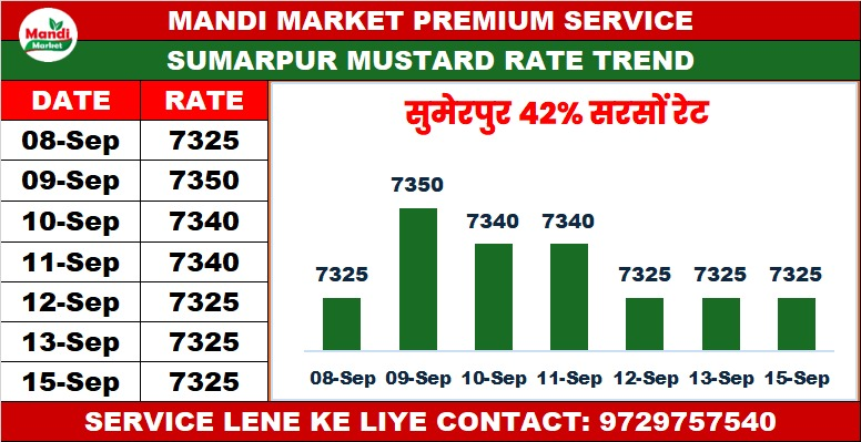 42% कंडीशन सरसों भाव ₹ 7320 स्थिर