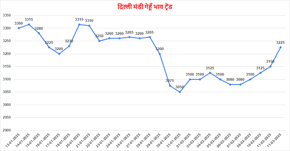 यूपी लाइन भाव ₹ 3200/25 तेजी 25