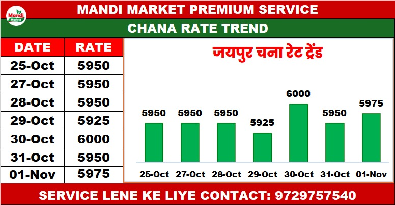 राजस्थान जयपुर लाइन भाव ₹ 5950 से ₹ 5975 तेजी 25