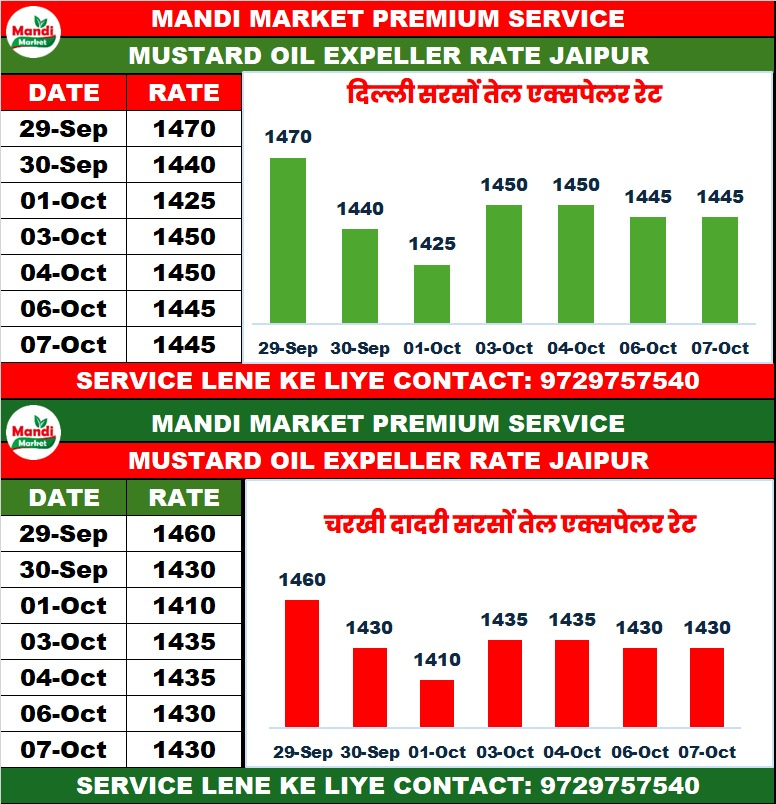 सरसों तेल एक्सपेलर भाव ₹ 1445 तेजी 0