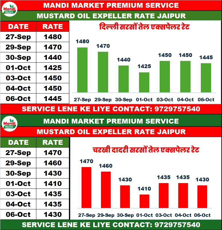 सरसों तेल एक्सपेलर भाव ₹ 1445 मंदी ₹ 5