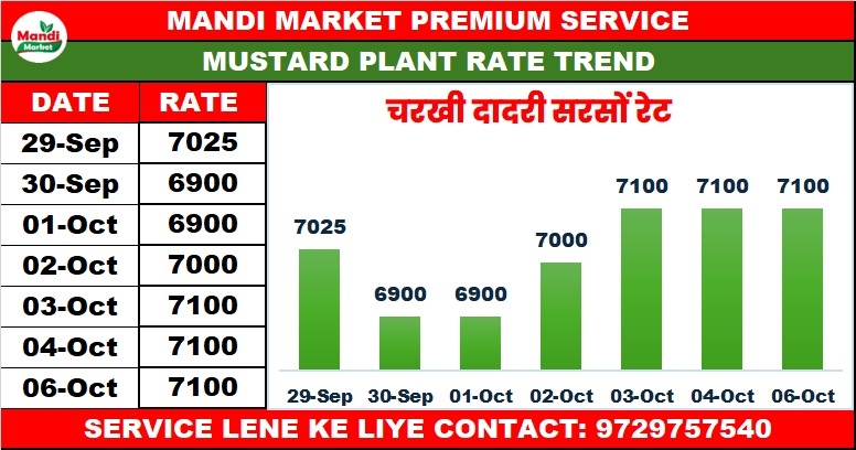 सरसों भाव ₹ 7075/7100 तेजी ₹ 0