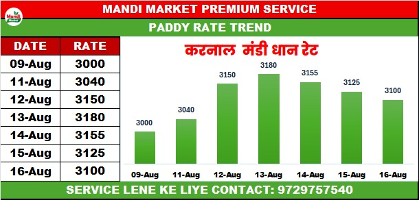 धान 1509 भाव ₹ 3100 मंदी 25( कल के रेट से )