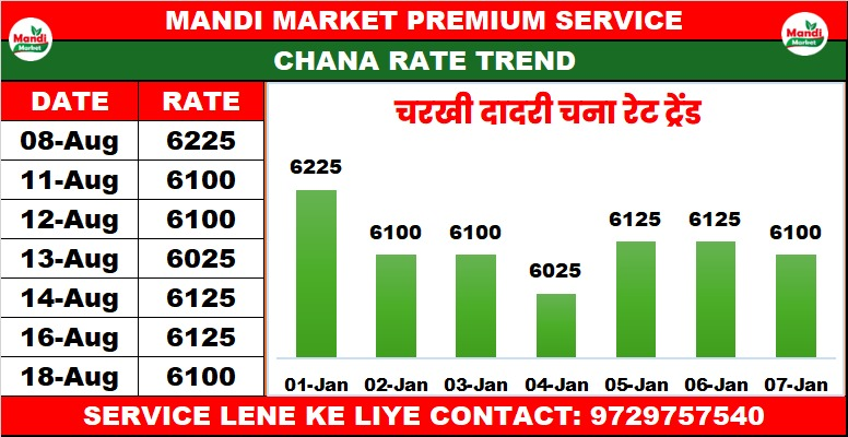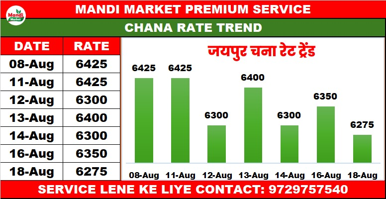 चना काँटा भाव ₹ 6200/6225 मंदी ₹ 75
