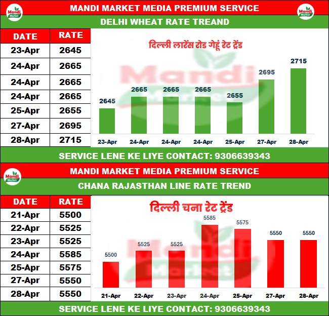 राजस्थान लाइन गेहूं का भाव ₹ 2710/2715 तेजी ₹ 20 ↑