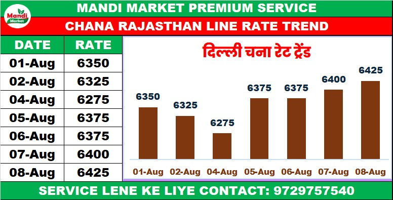 राजस्थान जयपुर लाइन चना भाव ₹ 6400 से ₹ 6425 तेजी ₹ 25