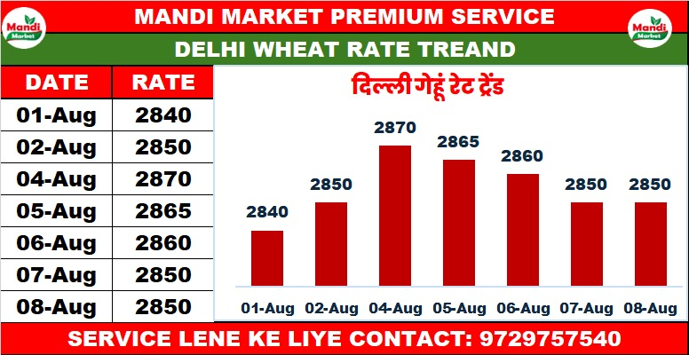 एमपी, यूपी, राजस्थान लाइन गेहूं भाव ₹ 2850 स्थिर