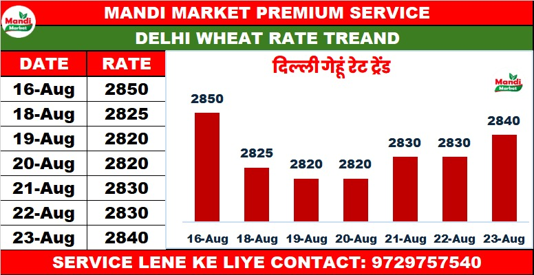 राज लाइन गेहूं भाव ₹ 2840 तेजी ₹ 0
