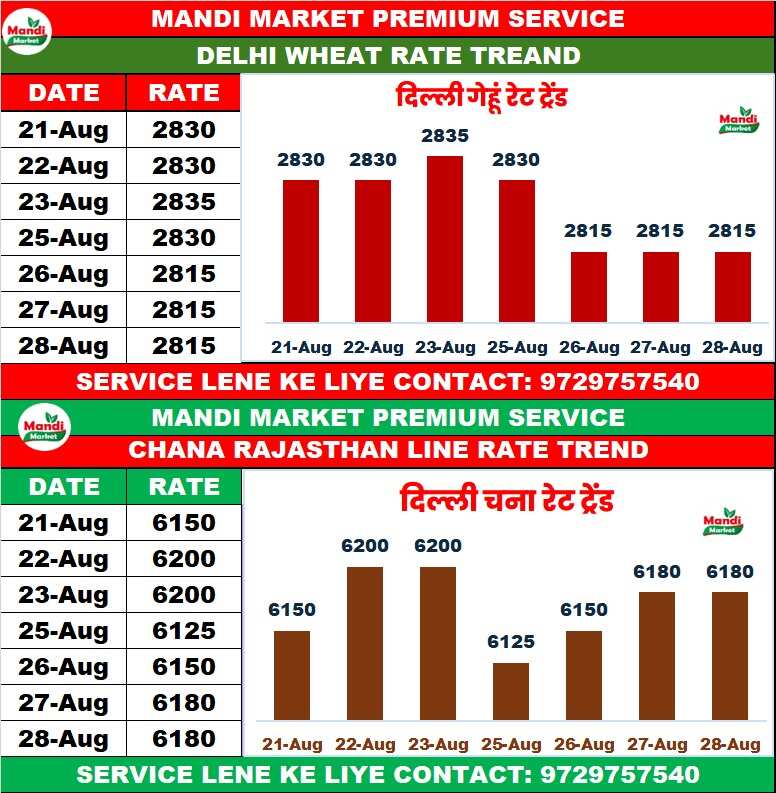 राज लाइन गेहूं भाव ₹ 2810/2815 तेजी ₹ 0