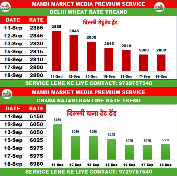 राजस्थान लाइन गेहूं का भाव ₹ 2800 से ₹ 2800 तेजी 0