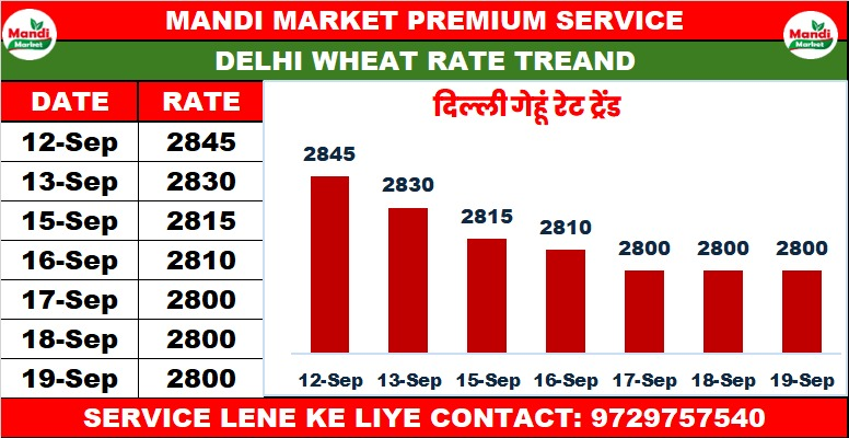 एमपी लाइन गेहूं का भाव ₹ 2800 से ₹ 2800 तेजी 0