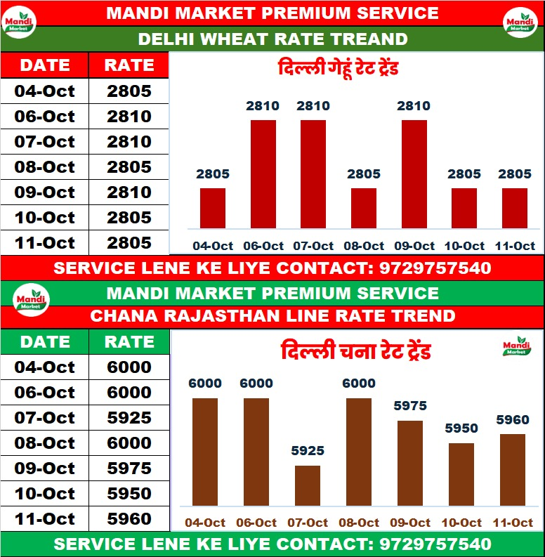 एमपी लाइन गेहूं का भाव ₹ 2800 से ₹ 2805 तेजी 0