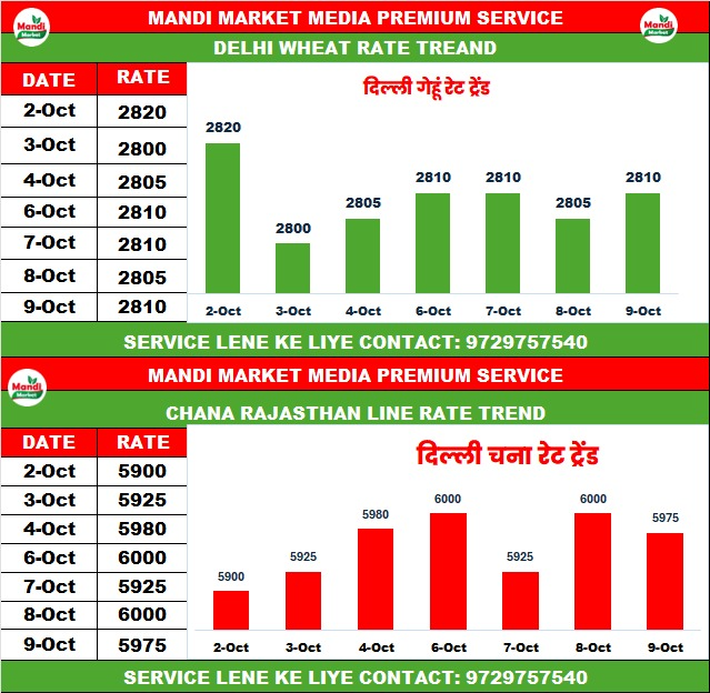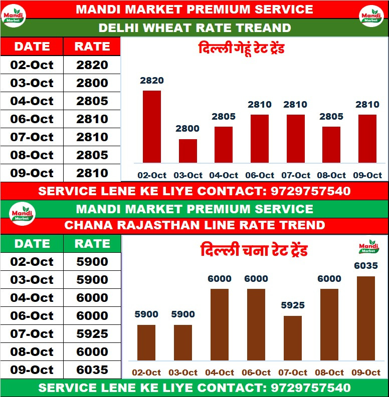 राजस्थान लाइन गेहूं का भाव ₹ 2805 से ₹ 2810 तेजी 5