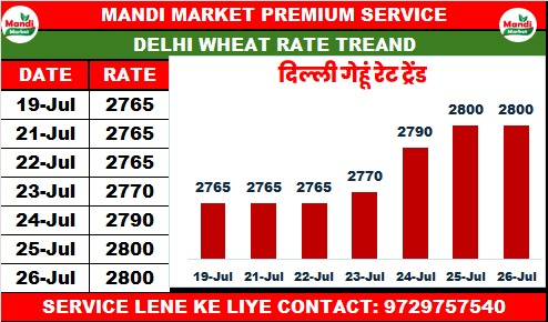 गेहूं मिल डिलीवरी भाव ₹ 2725 से ₹ 2755