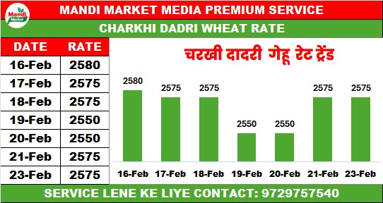 गेहूं (WHEAT) राजस्थान नेट (RAJASTHAN NET) भाव ₹2600