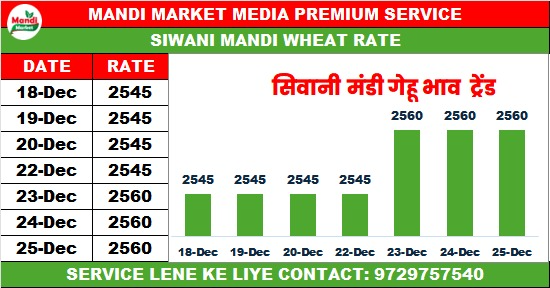गेहूं ITC क्वालिटी भाव ₹2500 मंदी ₹20