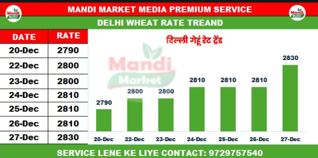 गेहूं मिल डिलीवरी भाव ₹2720 तेजी ₹20
