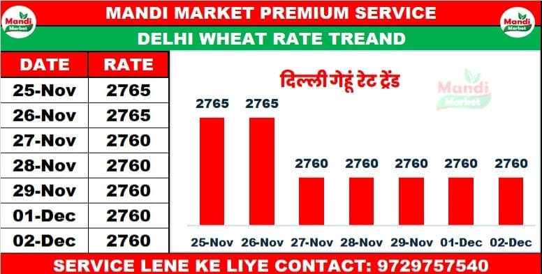 गेहूं नेट भाव ₹2960/2980 स्थिर