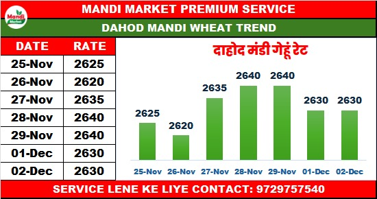 मालवराज गेहूं भाव ₹2600 मंदी ₹50