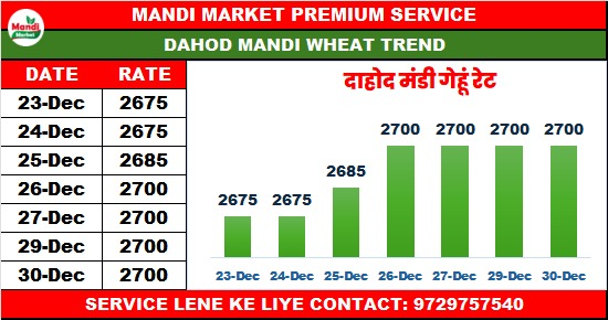 गेहूं भाव ₹2600/2680 मंदी ₹10