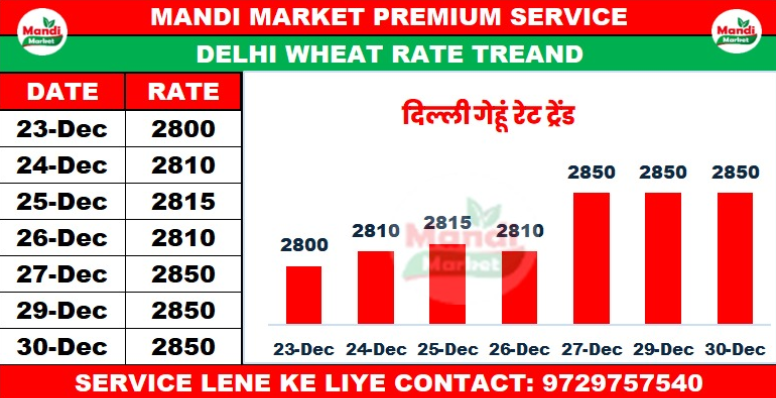 गेहूं लोकवान 1544 भाव ₹2800/3050 मंदी ₹50