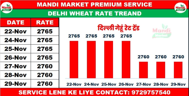 लोकवान गेहूं भाव ₹2600/2900 मंदी ₹200