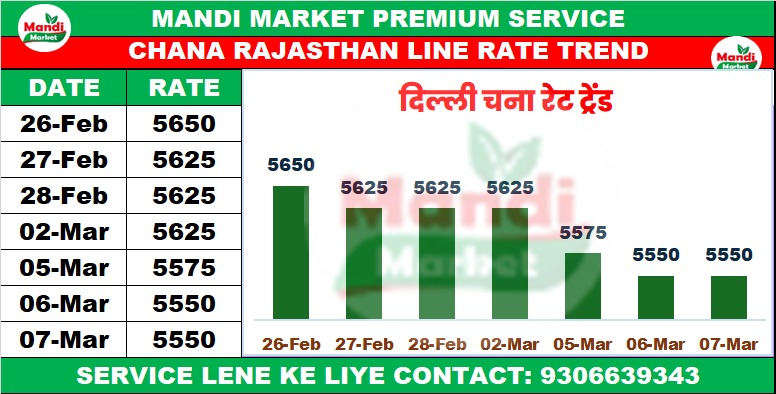 चना मोसमी नया भाव ₹ 5800 से ₹ 6800 मंदी ₹ 200 ↓