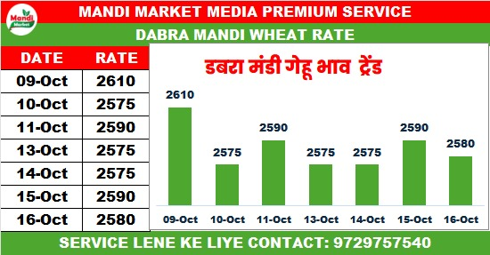 बढ़िया राज गेहूं भाव ₹2580 मंदी ₹10