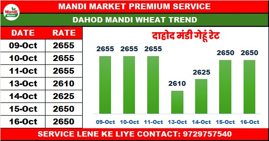 गेहूं मध्य प्रदेश मिल क्वालिटी नेट भाव ₹2610 स्थिर