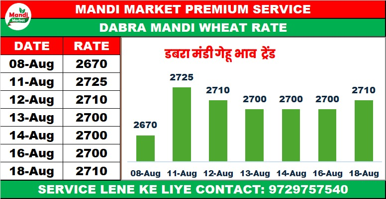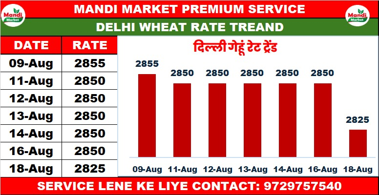 राज लाइन गेहूं भाव ₹ 2820/2825 मंदी ₹ 25