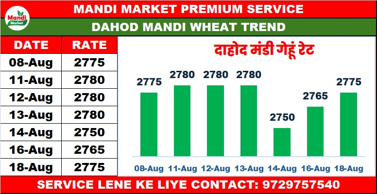 गेहूं मंडी भाव ₹ 2775 तेजी ₹ 10