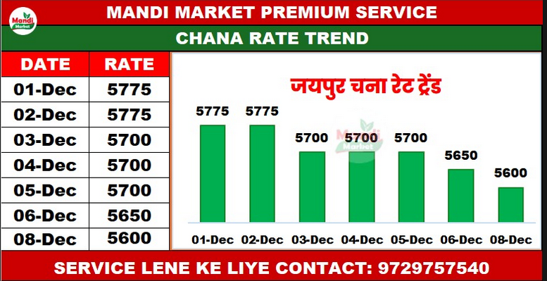 चना मिल क्वालिटी भाव ₹ 5400/5550 मंदी ₹ 50