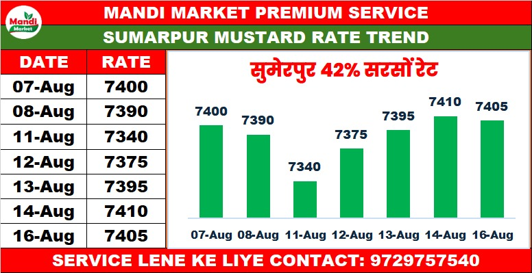 सरसों 42% कंडीशन भाव ₹ 7100 स्थिर