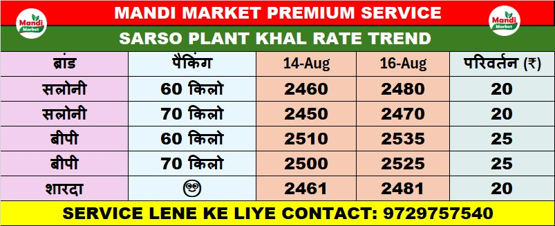 खल भाव ₹ 2325/2330 तेजी ₹ 20