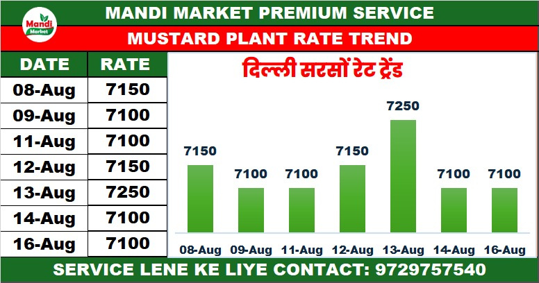 सरसों भाव ₹ भाव ₹ 7100 स्थिर