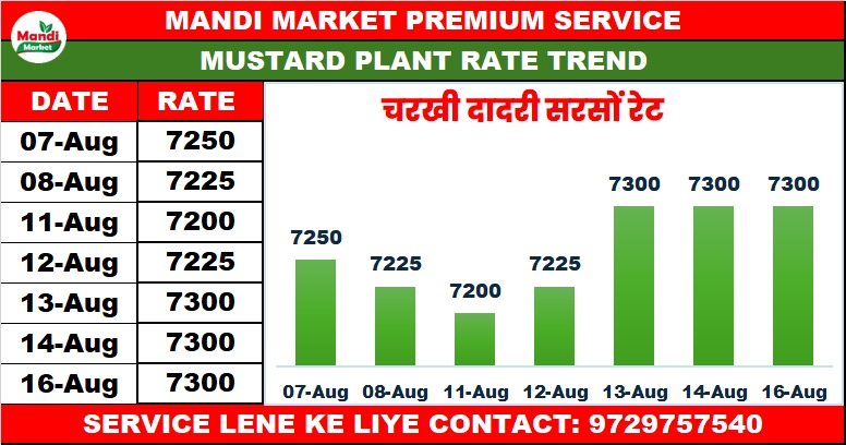 सरसों भाव ₹ 7350 तेजी ₹ 50