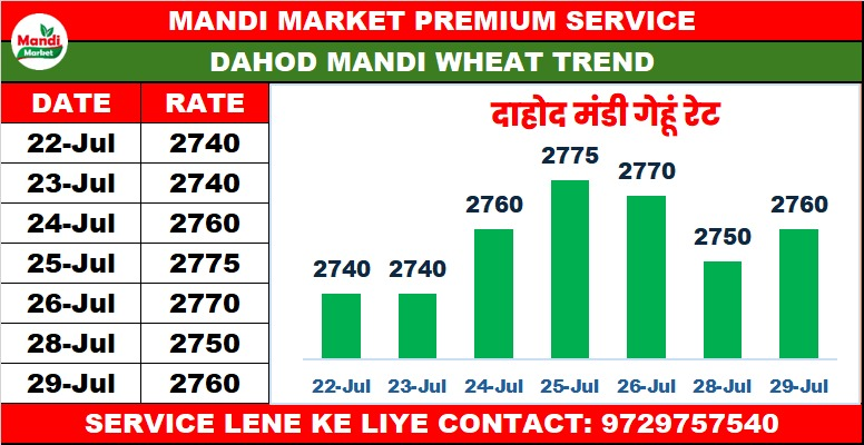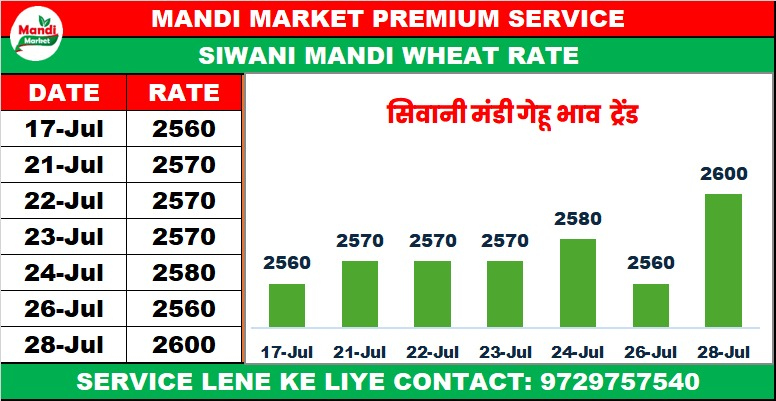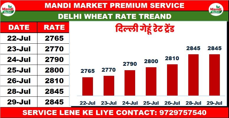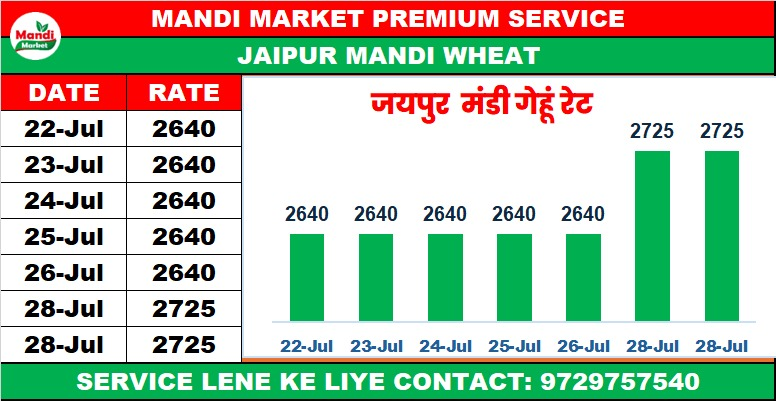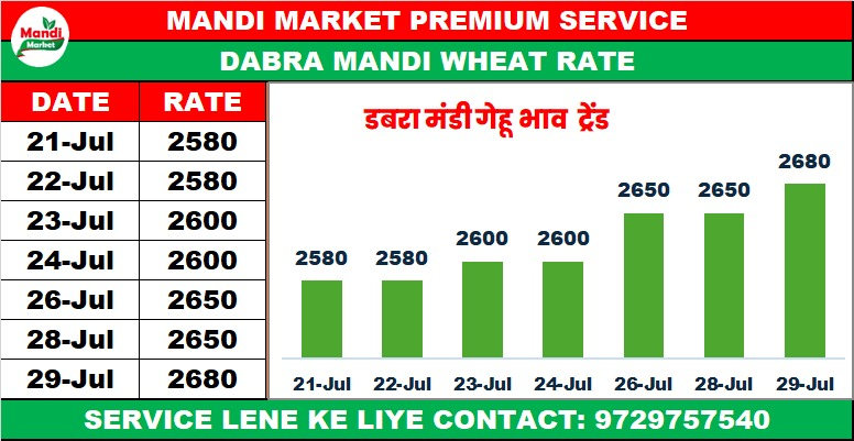गेहूं बढ़िया राज भाव ₹2680 मंदी ₹20