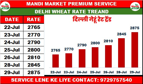 यूपी लाइन गेहूं भाव ₹ 2870 से ₹ 2875 तेजी ₹ 30