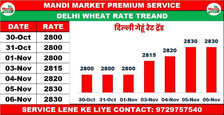 गेहूं नेट भाव ₹2980/3000 तेजी ₹10