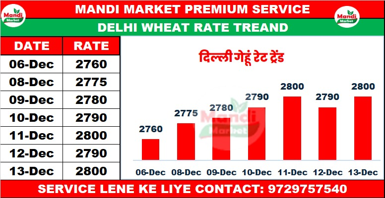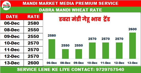 गेहूं बढ़िया राज भाव ₹2600 तेजी ₹30