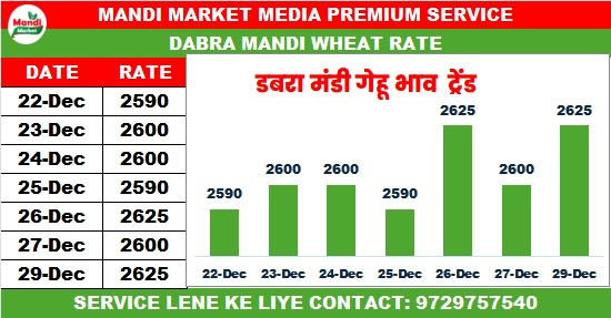 गेहूं बढ़िया राज भाव ₹2625 तेजी ₹25