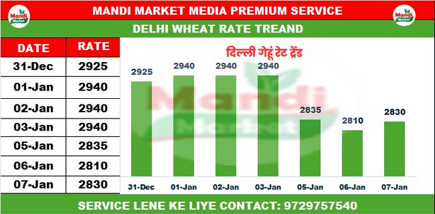 गेहूं मिल डिलीवरी भाव ₹2800/2850 मंदी ₹50