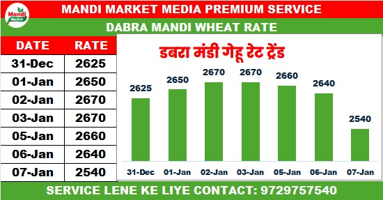 बढ़िया राज गेहूं भाव ₹2540 मंदी ₹100