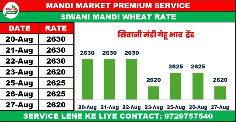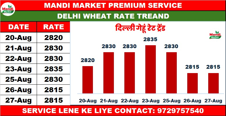 गेहूं भाव ₹ 2730 (मंडी पेड 1% CD)